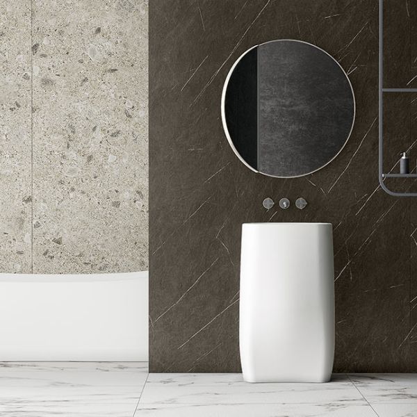 Pietre, marmi e graniti sono classificati combinandosi con un set di finiture studiate ad hoc – lucide, opache e strutturate in pattern tridimensionali – che creano una collezione dagli effetti interessanti per la fedeltà tattile e visiva alla sua natura minerale.